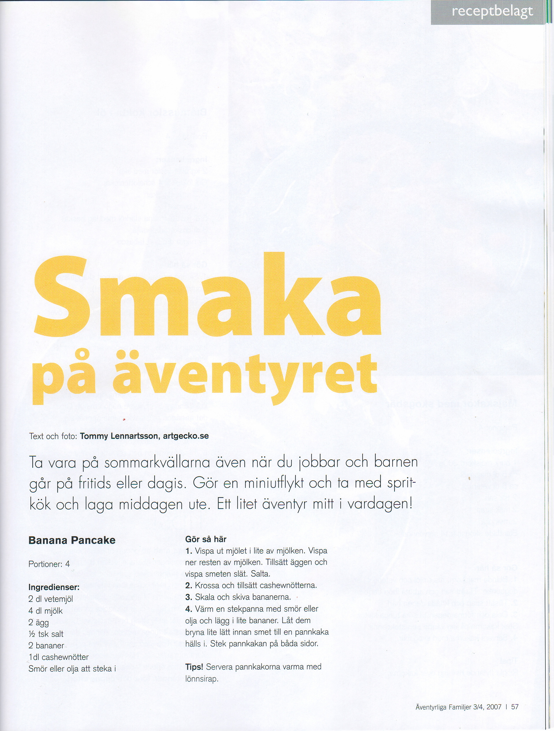 Matreportage åt magasinet Äventyrliga Familjer, där jag under 3 år hade förmånen att leverera färdiga matreportage.